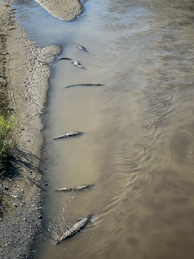 Die Crocodile Bridge in Costa Rica ist ein beliebter Ort, der vor allem für die vielen Krokodile bekannt ist, die man unter der Brücke im Fluss sehen kann. Sie befindet sich in der Nähe der Stadt Tarcoles, etwa 1,5 Stunden von San José entfernt, auf dem Weg nach Jaco an der Pazifikküste.